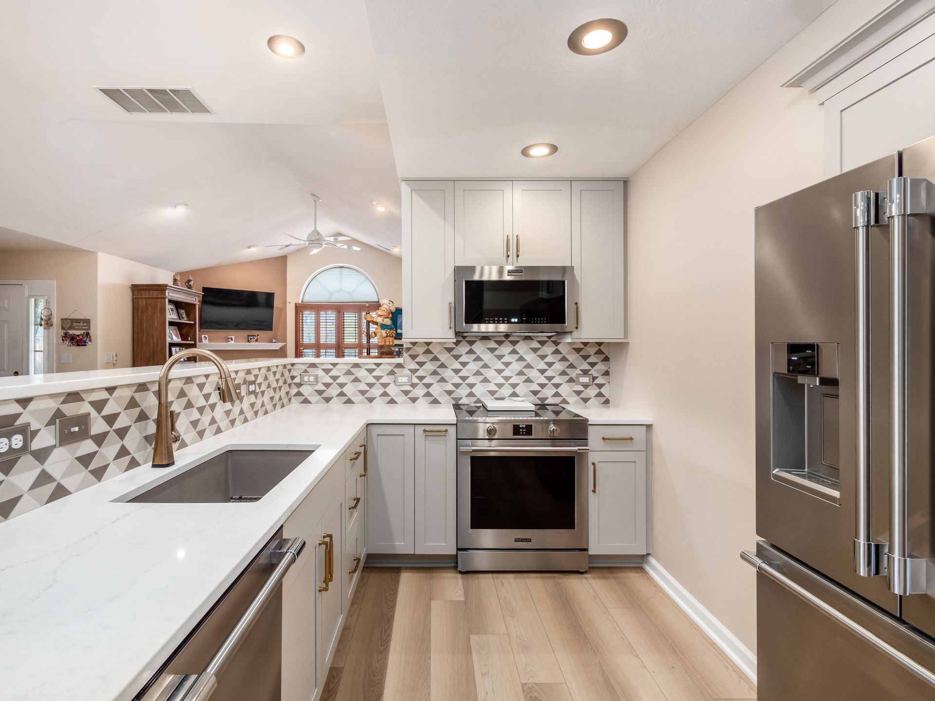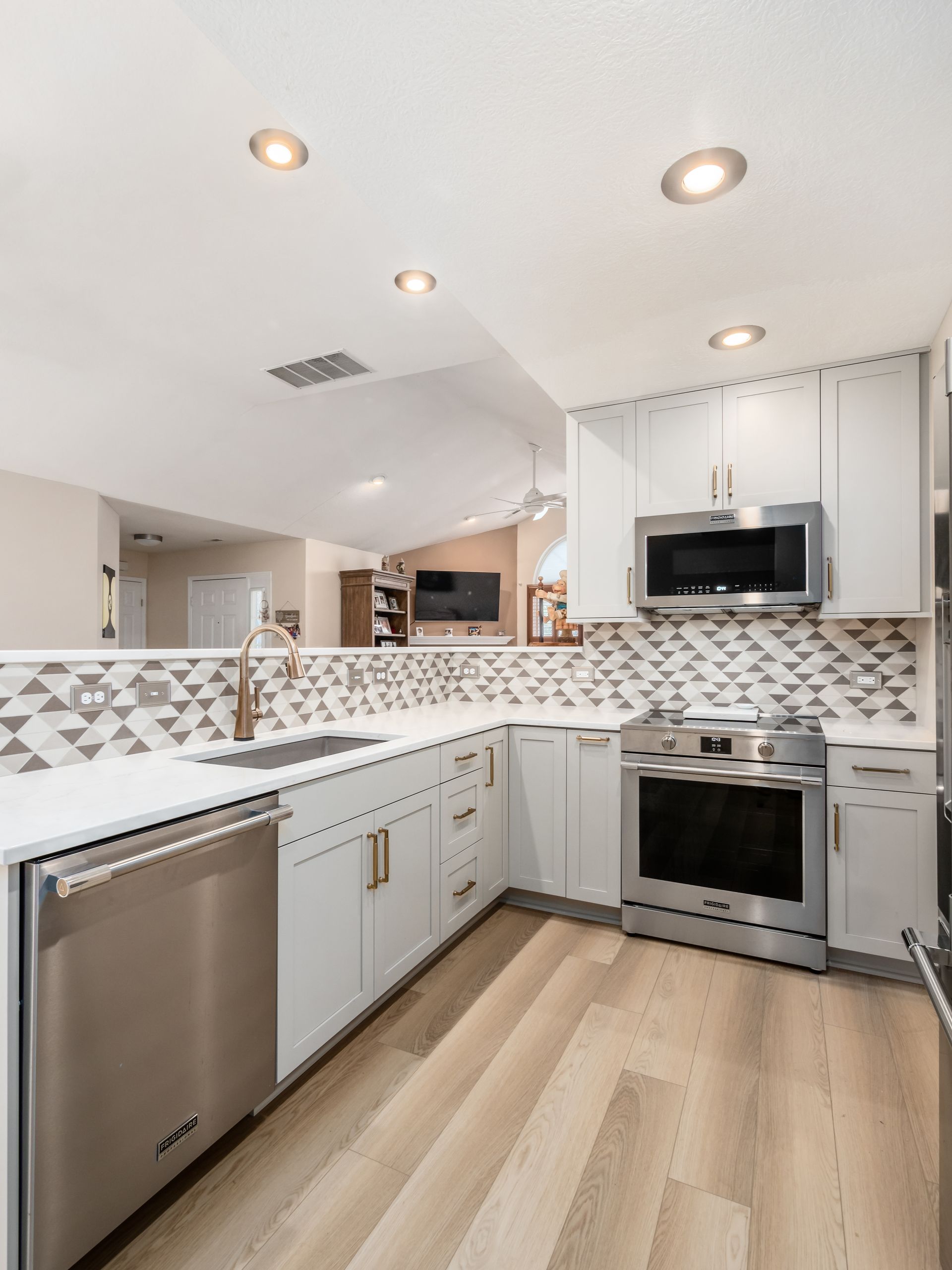 New appliances were seamlessly integrated to support modern cooking needs, while luxury vinyl plank (LVP) flooring offers warmth, resilience, and easy maintenance—perfect for a busy household.
