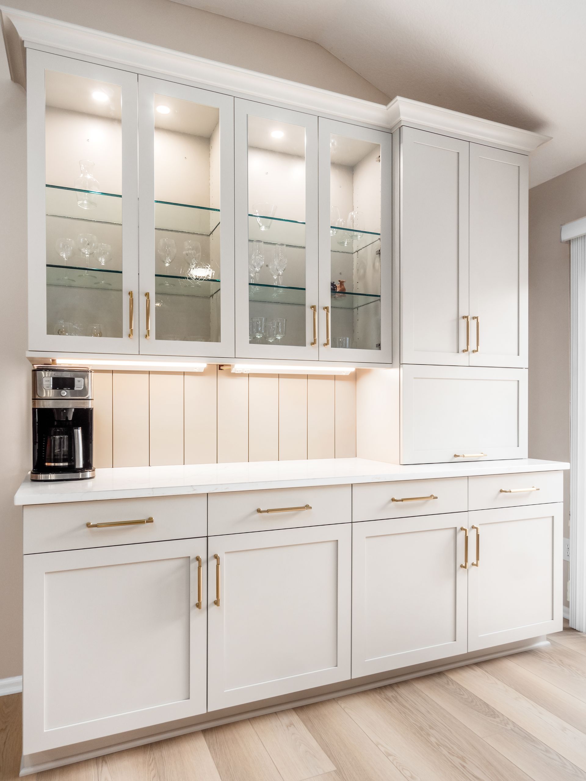 This space now features European construction cabinetry, offering not only sleek, clean lines but also enhanced storage capacity with wider drawers and maximized usable space. The taller upper cabinets make a bold visual statement while ensuring no inch of storage is wasted.